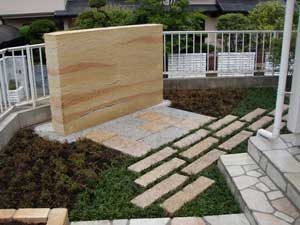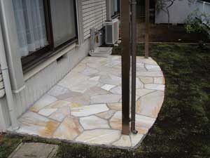 これから、小さなお子様が遊べる様に芝を張り、石英岩でテラスを造り大変喜んで頂けました。