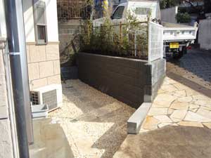 ブロックを積み、車止めを付けて完成です。リーズナブルなプランで満足して頂けました。