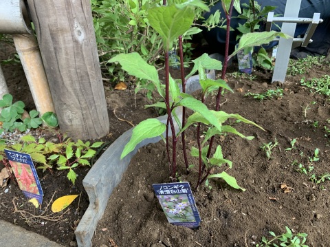 新芽が綺麗なキンマサキを提案させて頂きました。手前にレモンを植えたので、お子様と実を収穫するのが楽しみですね。土も入れ替えたので今後の生育も良くなる事でしょう。